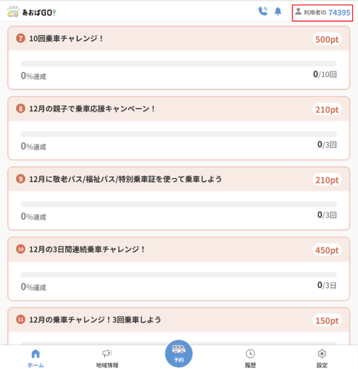 〇複数乗車ミッション「一緒に乗車チャレンジ!2名以上で乗車しよう!」も同時獲得となり210円分付与(1月の場合)
