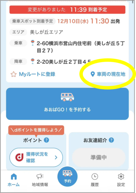 当日すぐの予約もOK! アプリでの予約完了時に最短の配車時間がすぐにわかります。※他の方との乗合状況等により、時間は変動する場合があります