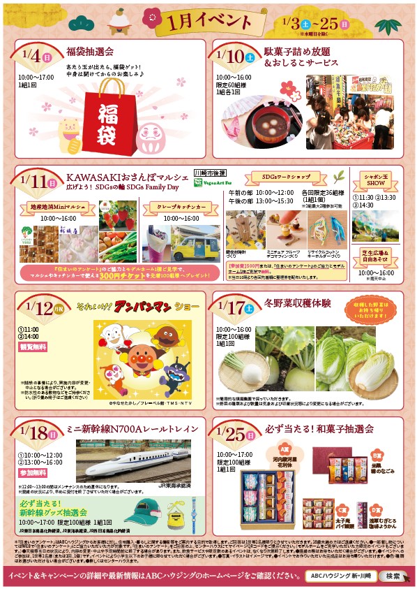 2026年1月のイベントは、『ミニ新幹線トレイン』や『駄菓子詰め放題』『冬野菜収穫体験』など目白押し!