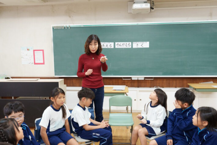 「単なるおしゃべりではなく、相手を尊重しながら、自分の考えと相手の考えを編み込んでいく。それが対話です。1年生から6年生まで、発達段階に応じた形で『対話』を日常化していきたい」と語ります。