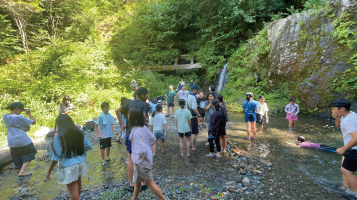 卒塾生も参加するほど人気の夏合宿。朝晩は勉強に集中し日中は鍾乳洞探検や川遊びで思いっきり遊ぶことで「学びと遊びのメリハリ」を習得します。(新・教育環境コパック)