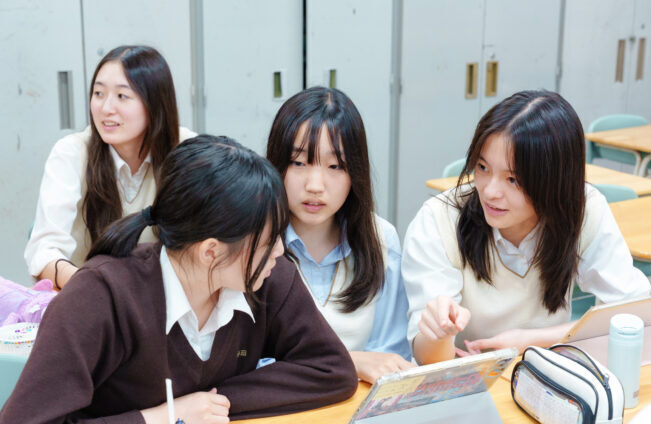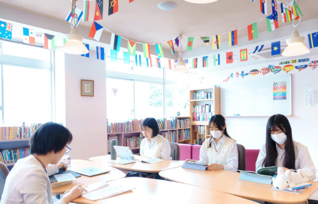 インターナショナルコースに在籍しています。中学1年~高校1年までは英語、数学、理科の授業がオールイングリッシュ。