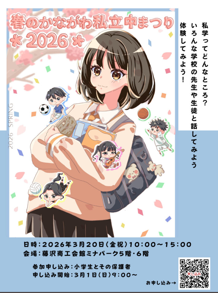 2026年3月20日(金・祝)に、「春のかながわ 私立中まつり2026」が藤沢商工会館ナミパークにて開催されます。