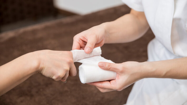 すり傷や切り傷の場合、思った以上に傷口が深かったり痛みが伴うときは、躊躇せずに早めに形成外科を受診しましょう。その際は、傷が痛くても慌てずに傷口を充分に洗い、しっかりと汚れを取り除き、乾かさないようにガーゼを当てて保護しておきます。