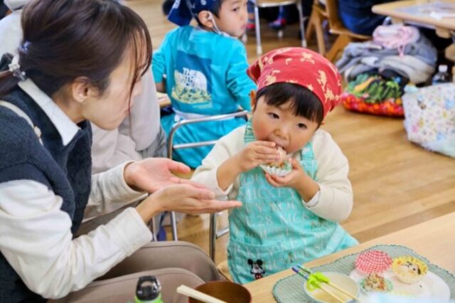 あっという間に、まんまるおにぎりができちゃうので、年少さんでも楽しめます。