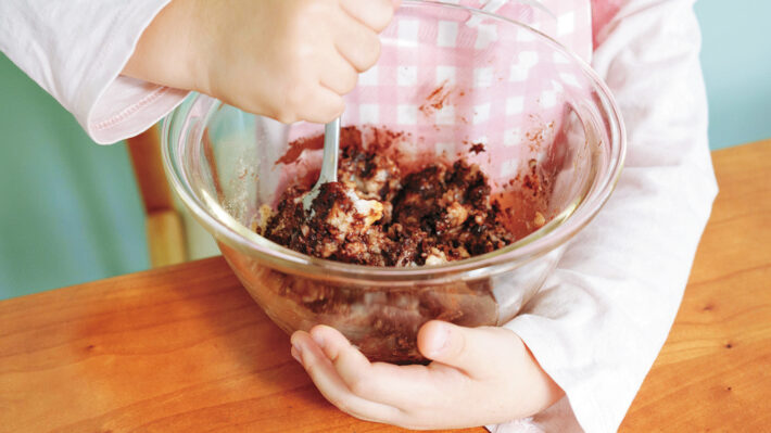 主役の里いもには2種類の食物繊維が入っていて、ココアパウダーやレーズンといっしょに腸を元気にしてくれます。