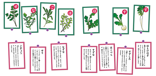 このおかゆの中に入れる7つの草のなまえをぜんぶ言えるかな?