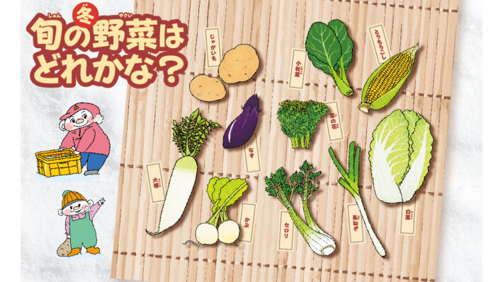 今回は冬に旬をむかえる野菜をさがしてみてね!